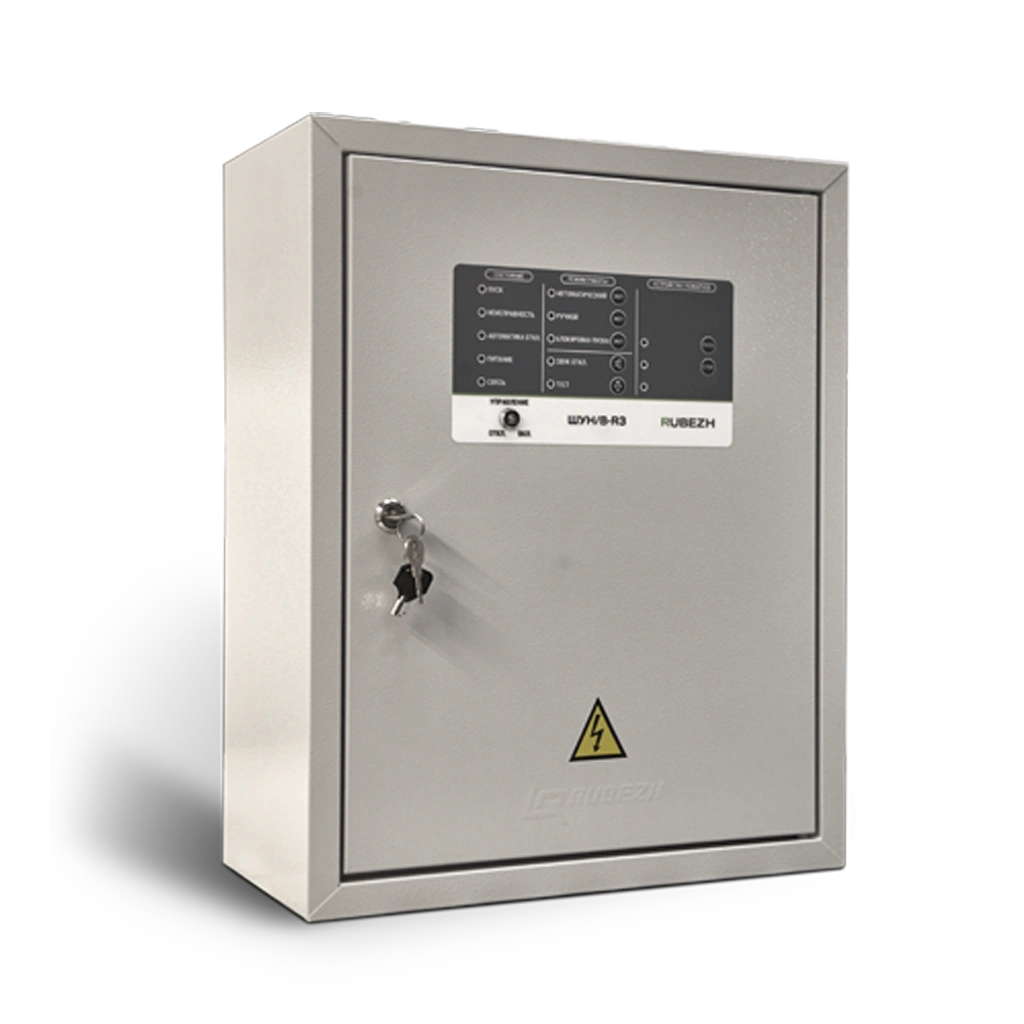 Шкаф управления насосом ШУН/В-R3 — пожарный шкаф управления, предназначенный для управления электродвигателями дренажного насоса, жокей-насоса, насоса пожаротушения и вентилятора приточно-вытяжной вентиляции или вентилятора дымоудаления в адресных системах противопожарной защиты «Рубеж». ШУН/В-R3 управляет электродвигателем через магнитный контактор: включение и отключение контактора возможно в автоматическом режиме по командным импульсам встроенного в шкаф контроллера (по сигналу с ППКПУ) и в ручном режиме — кнопками шкафа без участия контроллера. В системе устройство занимает 1 адрес, обеспечивая корректную адресацию и обмен данными по цифровой линии связи.