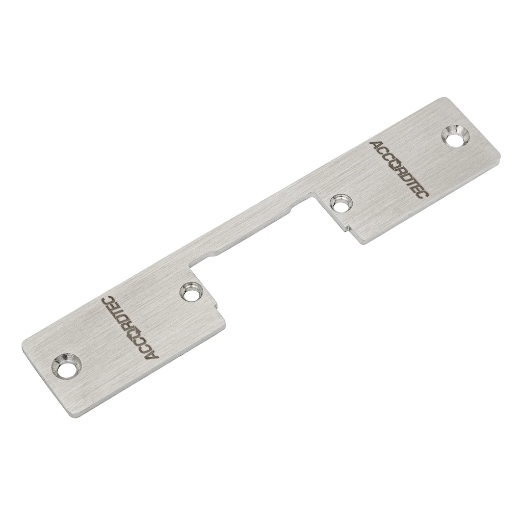 Планка AccordTec для электрозащёлки AT-ES02 – это дополнительный аксессуар, предназначенный для удобного и надёжного монтажа замка в дверную коробку. Она обеспечивает точную фиксацию и правильное расположение защёлки, повышая надежность работы устройства и срок службы дверной системы. Компактные размеры и минимальная толщина позволяют использовать планку в ограниченных монтажных пространствах без нарушения эстетики дверного проема.