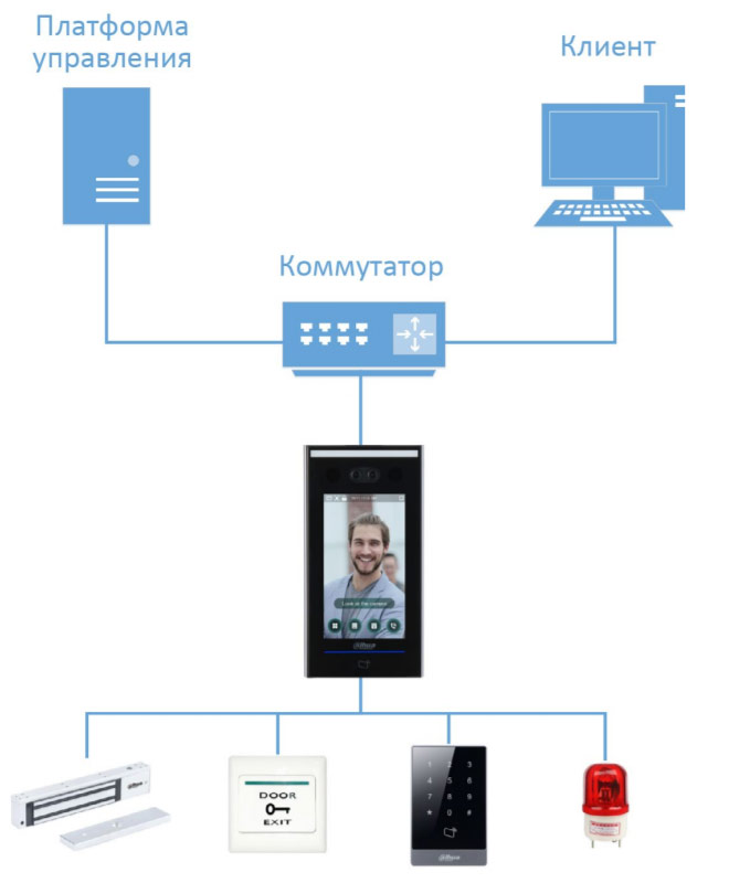 • Аутентификация: пользователей По смарт-карте, паролю, лицу и их комбинациям (возможность удаленного открытия двери)