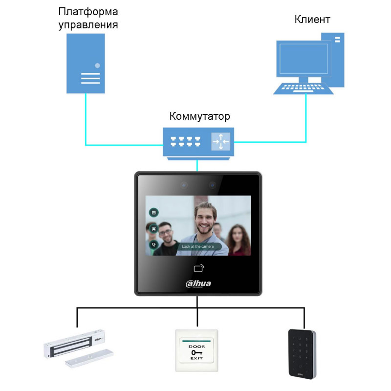 • Аутентификация пользователей: По паролю, карте, лицу и их комбинациям (возможность удаленного открытия двери)