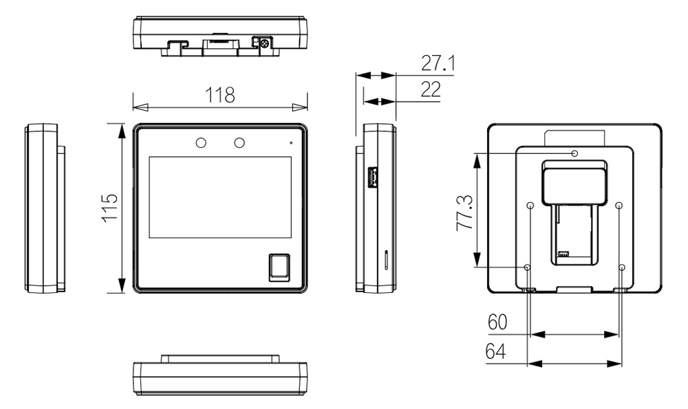 • Размеры: 115 мм × 118 мм × 27.1 мм