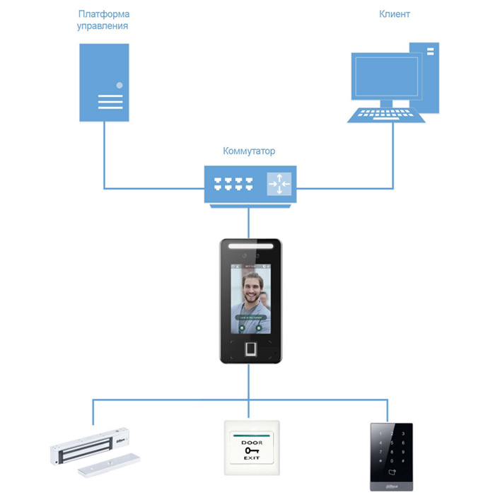 • Аутентификация пользователя по лицу, смарт-карте, отпечатку пальца, паролю и их комбинации, поддержка расписаний