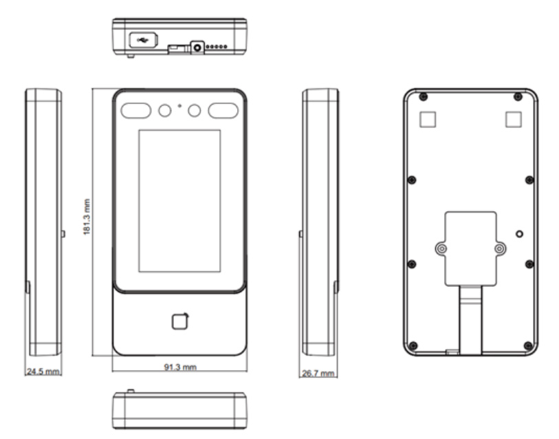• Терминал доступа с функцией распознавания лиц, 4.3″ сенсорный LCD-экран, 2 Мп широкоугольный объектив, встроенный модуль чтения Mifare
