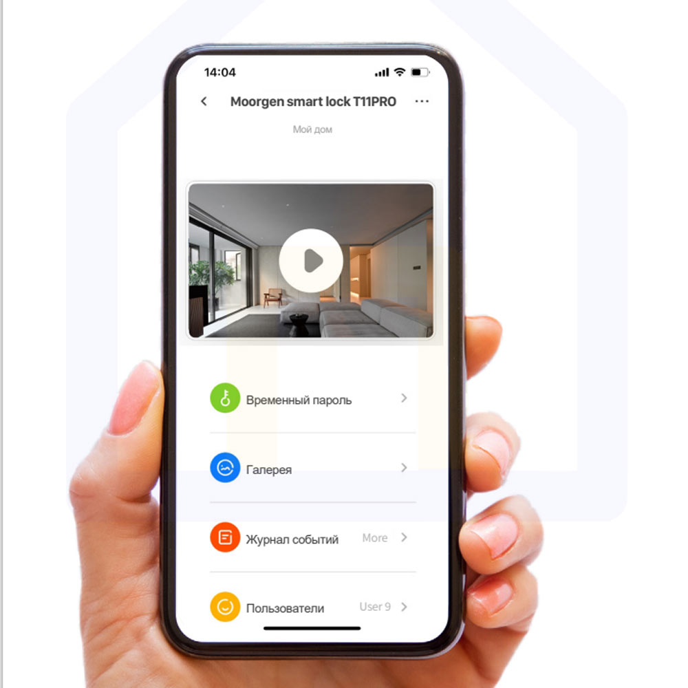 Загрузите приложение Moorgen Life APP для удаленного мониторинга состояния в режиме реального времени.Удаленная активация видеоглазка позволяет свободно выбирать режим блокировки/разблокировки во время звонка по видеодомофону. Доступны функции видеозаписи, фотосъемки и облачного хранения.
