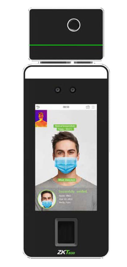 Терминал SpeedFace-V5L[TI] оснащен тепловизорной камерой, отображающей изображение на экране и специализированным процессором ZKTeco для распознавания лиц и новейшей технологии компьютерного зрения, поддерживает распознавание лиц и ладони.