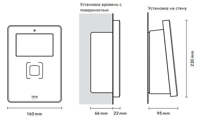 - 160 x 230 x 88/22 (врезной корпус, общая глубина/размер выступающей части устройства)