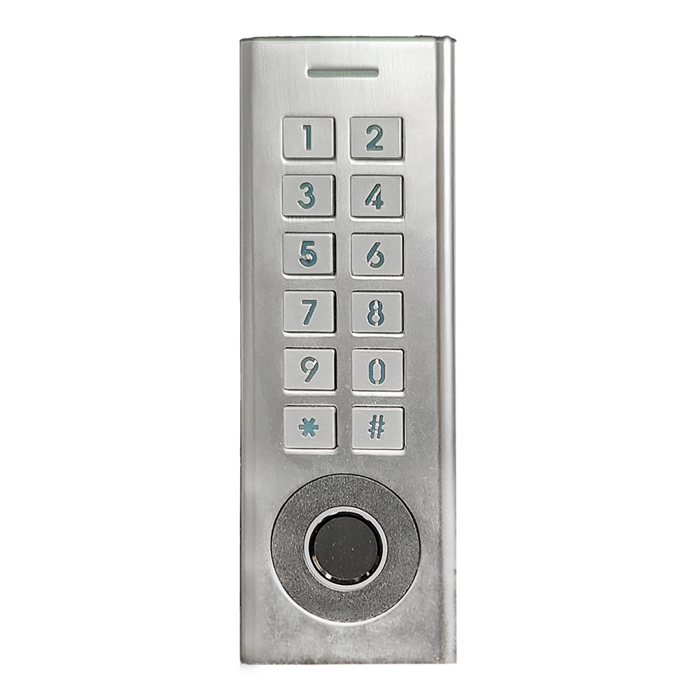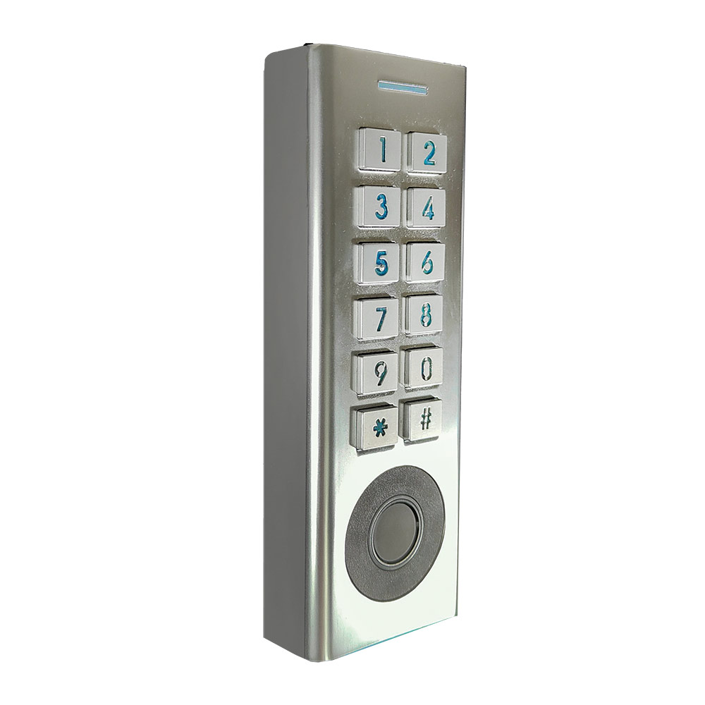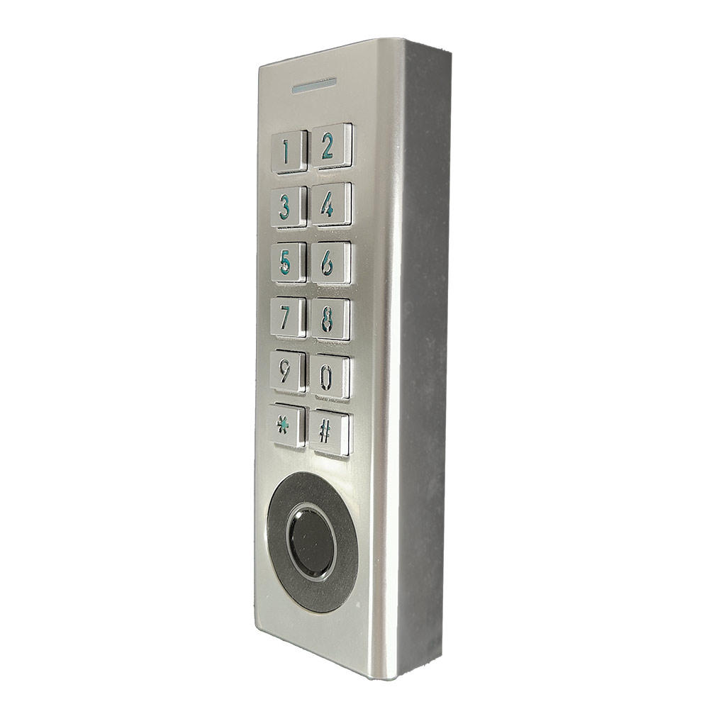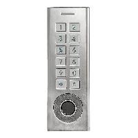 Кодонаборная панель пыле- влагозащищённая с классом защиты IP66, со встроенным считывателем отпечатков пальцев, считывателем идентификаторов формата Em-marin и автономным контроллером на 99 отпечатков и 988 карт/кодов и выходом Wiegand-26-44.