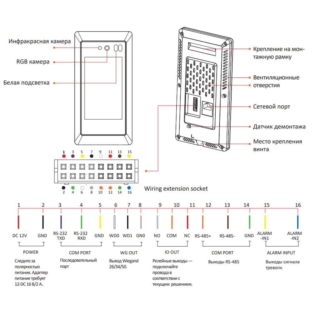 Интерфейс связи с контроллером | RS-485, Wiegand-26, Wiegand-34, Wiegand-50 |