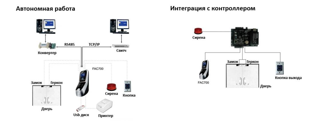 Терминал по лицу используется для прямого управления замком. В этом случае Multibio700 является контроллером и считывателм в едином корпусе. При таком построении обеспечивается удобство и простота монтажа биометрической системы.