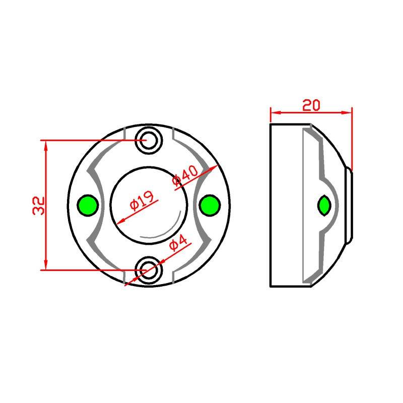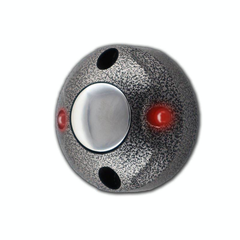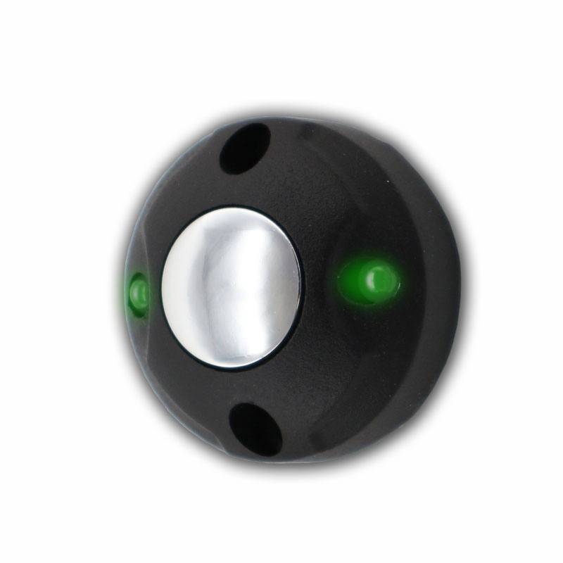 Кнопка отлита из цинкового сплава и имеет антивандальную конструкцию. Подсветка из двух светодиодов позволяет найти кнопку в полной темноте. При смене полярности питания цвет подсветки меняется с зелёного на красный.
