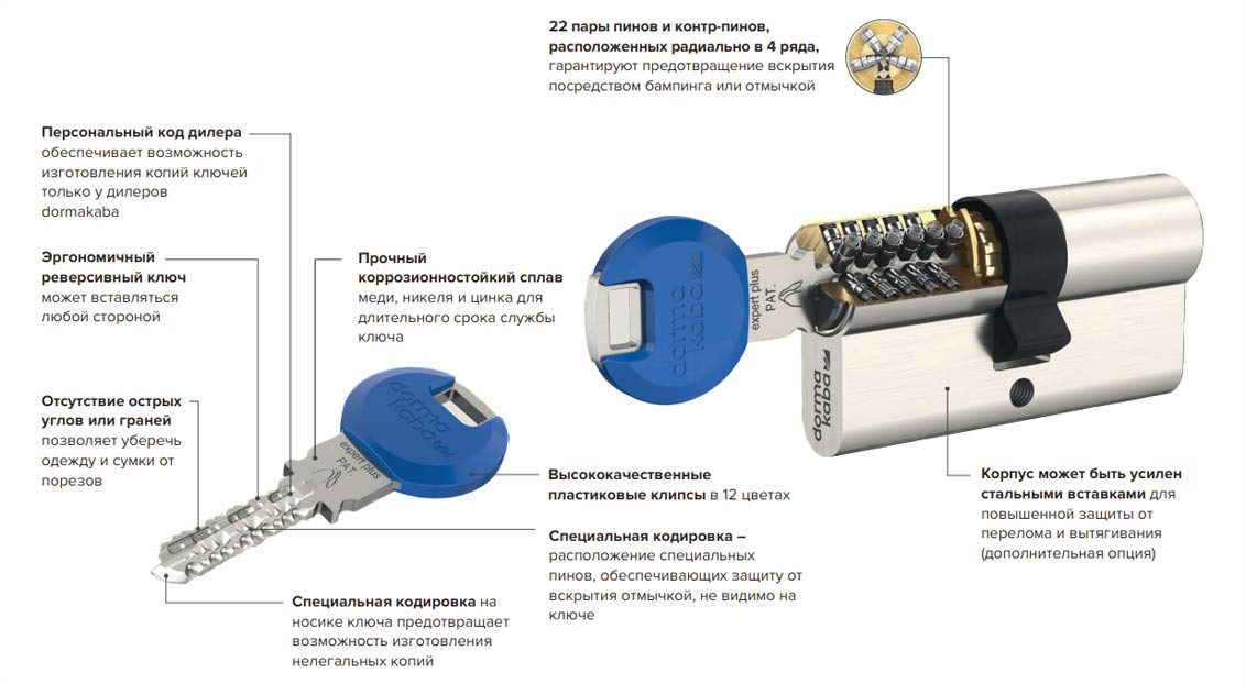 Система expert plus защищена патентом до 2033 года. Дубликаты ключей на нее можно изготовить только в авторизованных сервисных центрах или непосредственно на заводе-изготовителе.