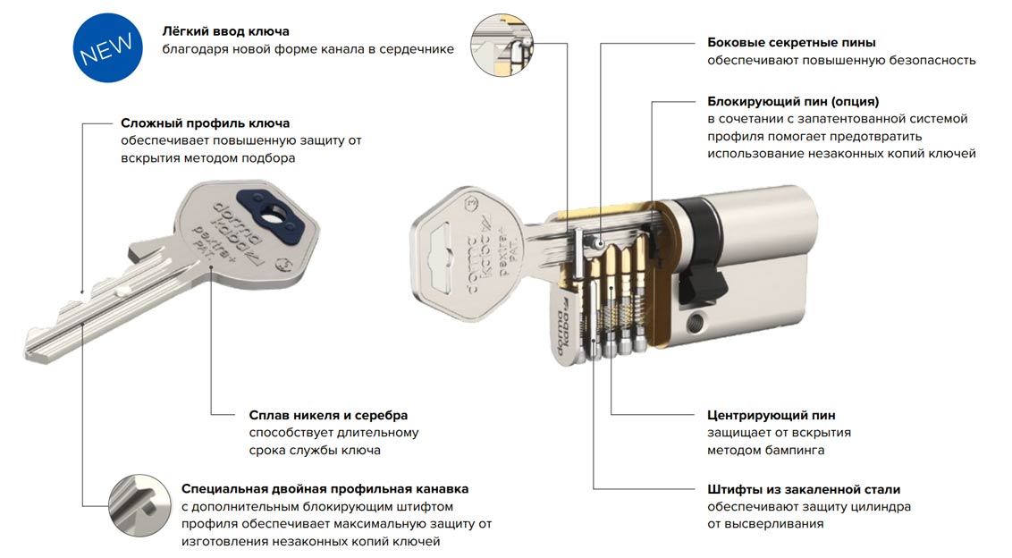От бампинга, От вскрытия отмычкой, От высверливания , От копирования ключа, От перелома