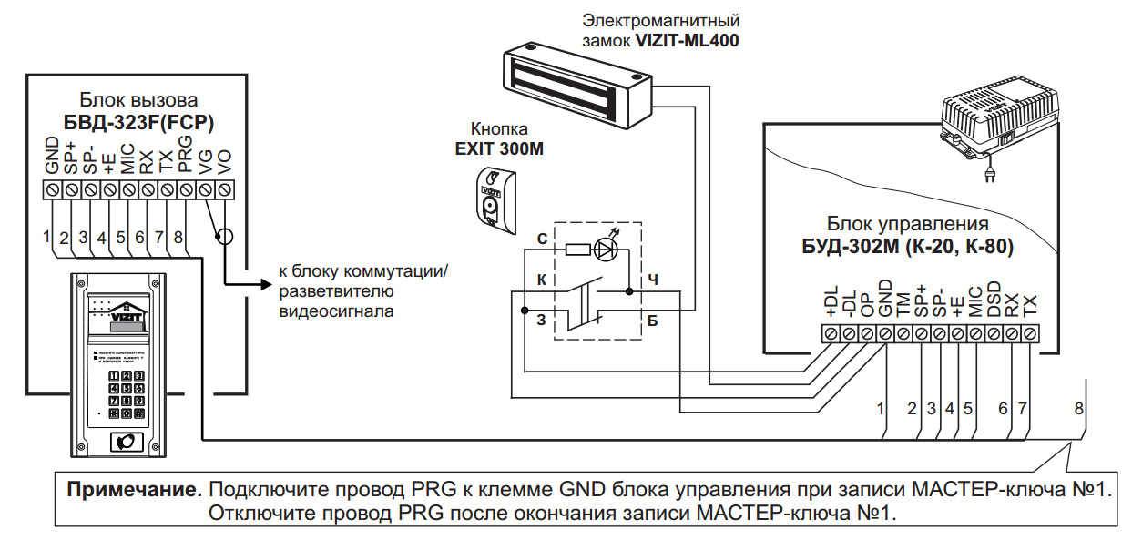 • блок вызова БВД-323FCP используется совместно с блоком управления БУД-302(М,К-20,К-80), БУД-430 или БУД-485(Р) как составная часть многоквартирного домофона VIZIT;