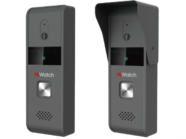 В комплект HiWatch DS-D100KF входит уличная вызывная панель. Устройство оборудовано 1/4" CMOS-камерой с разрешением 720x576 (D1) и частотой трансляции кадров 25Fps. Для работы в условиях недостаточной освещенности на «борту» присутствует адаптивная ИК-подсветка. Двустороннюю аудиосвязь можно организовать благодаря встроенным динамику и микрофону. Контроль отпирания двери – звуковой сигнал при срабатывании реле. Панель поставляется с поворотным кронштейном и защитным козырьком, защищающем от осадков. Материал – цинковый сплав.