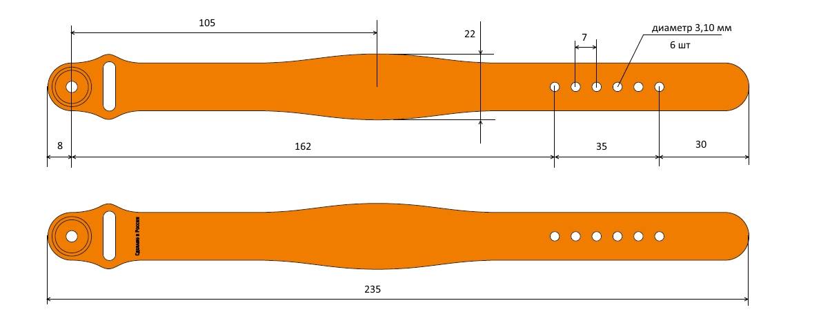 - 235x16 мм, толщина ремешка 2,5 мм (женский и детский)