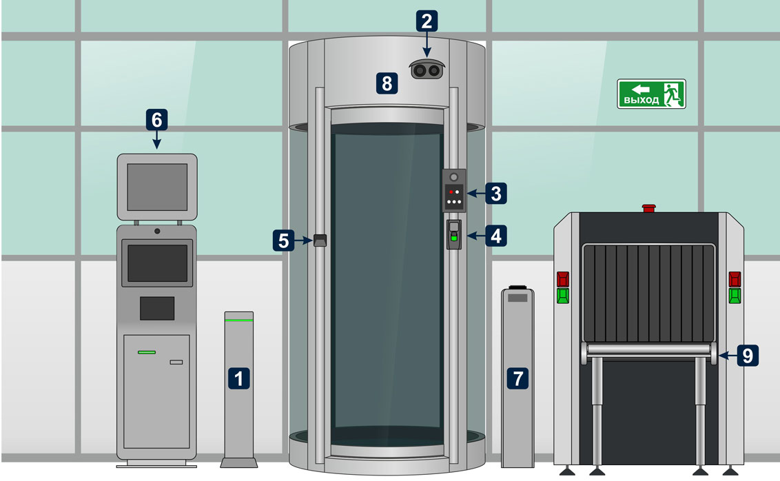 8. Шлюзовая пулестойкая кабина для управления потоками людей на проходных промышленных предприятий, в банках, административных учреждениях, магазинах, вокзалах, аэропортах и т.п.
