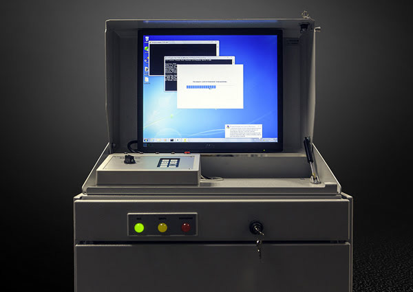 Установка имеет небольшие габаритные размеры, оснащена антивандальной крышкой, обеспечивающей защиту и предотвращающей повреждения монитора и пульта. Все основные функции по управлению установкой доступны на выносном пульте, что значительно упрощает работу оператора и повышает производительность контроля.