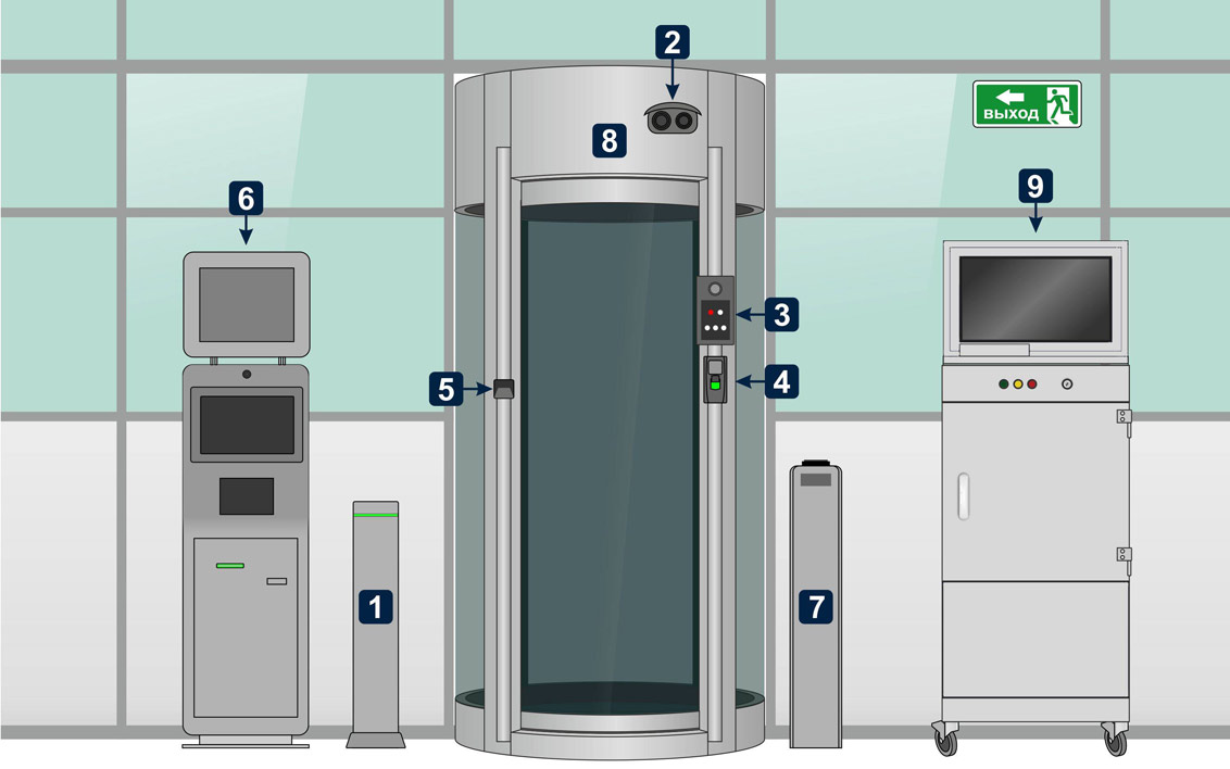 8. Шлюзовая пулестойкая кабина для управления потоками людей на проходных промышленных предприятий, в банках, административных учреждениях, магазинах, вокзалах, аэропортах и т.п.