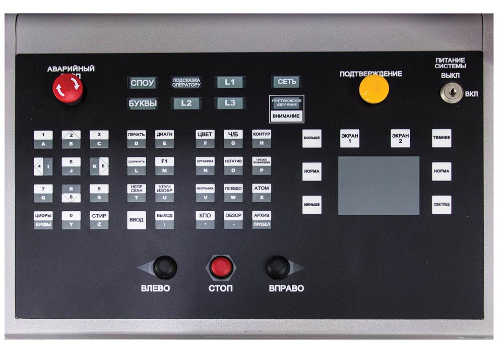 • Измерение атомного числа. Используя клавиатуру управления оператор может выделить любой участок на изображении для измерения его атомного числа. Это позволяет более точно оценить тип материала и степень его угрозы. Атомное число отображается с точностью 0,2.