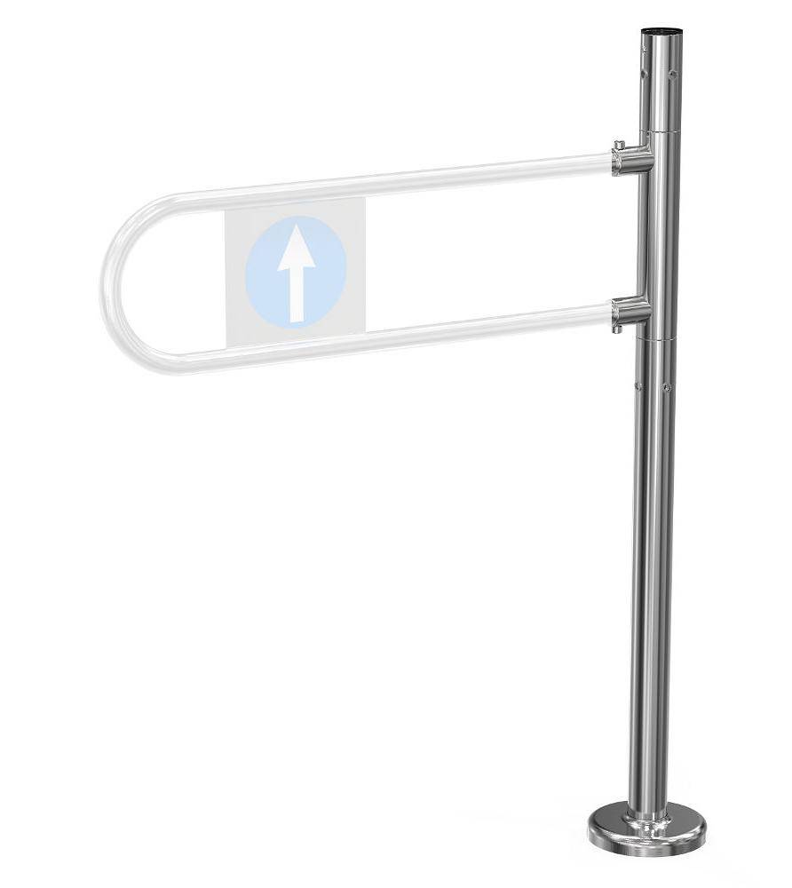 Калитки К11МпрХром и К11МлвХром – односторонние (пр – правые, поворот дуги возможен по часовой стрелке при виде сверху; лв – левые, поворот дуги возможен против часовой стрелки при виде сверху); при попытке пройти в обратном направлении они представляют собой преграду. На пластиковой вставке односторонних калиток с одной стороны изображена стрелка, с другой стороны - знак запрета.