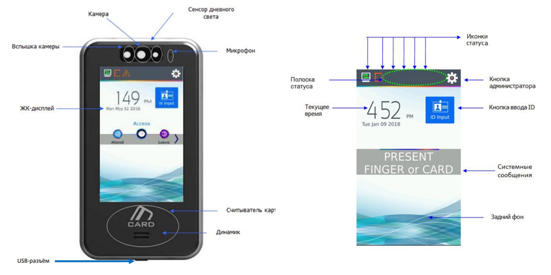 • Идентификатор карты: 125KHz RF; 13.56MHz Smart; HID 125K Prox card; HID iClass Card