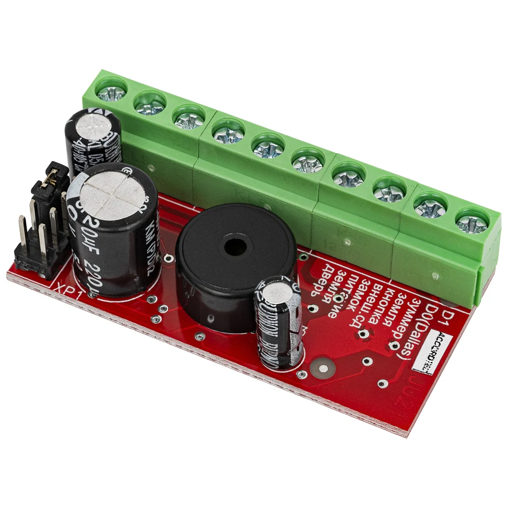 Контроллер оснащен встроенной световой и звуковой индикацией, что упрощает эксплуатацию и контроль состояния устройства. Дополнительно предусмотрено подключение внешних индикаторов и звукоизлучателей, что повышает информативность системы. Регулировка времени открывания замка в широком диапазоне позволяет адаптировать работу устройства под конкретные условия эксплуатации, будь то двери офисов, складов или других помещений.