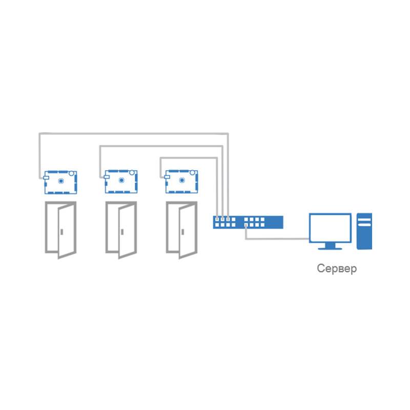Контроллер может работать как автономно, так и в составе сети. Для объединения в сеть СКУД служит интерфейс Ethernet (проводная компьютерная сеть).