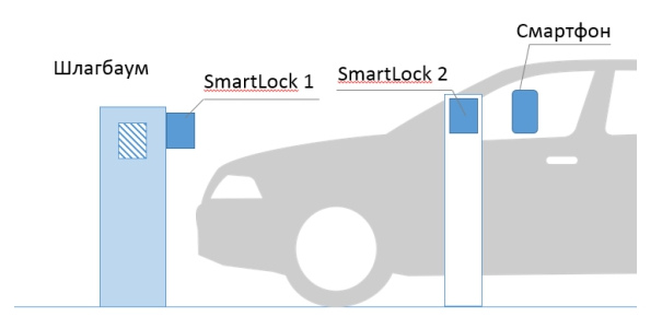 В случае, когда въезд и выезд осуществляются через разные шлагбаумы, установленные рядом, контроллеры для обоих направлений должны быть направлены на подъезжающие автомобили и разнесены на максимальное расстояние. По приближению или жесту будет срабатывать контроллер, который будет ближе к смартфону.