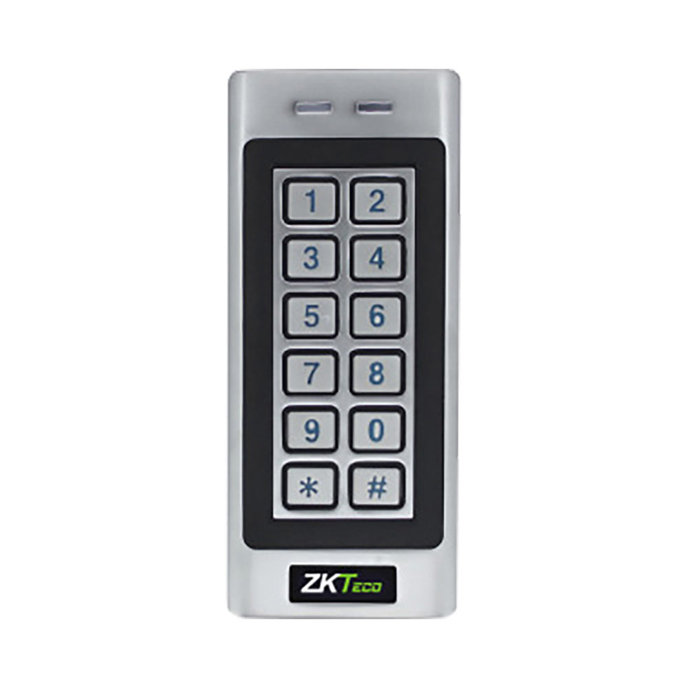 Терминал доступа ZKTeco MK-V (EM) адаптирован к круглогодичной работе на улице: защита корпуса от пыли и влаги соответствует стандарту IP66, рабочие температуры — -40 ºС… +60 ºС. Поддерживает идентификацию 1000 пользователей (в том числе до 10 посетителей с картами на заданное количество проходов) по карте, паролю, карте и паролю. Генерирует тревогу после пяти неудачных попыток ввода карты или PIN-кода.