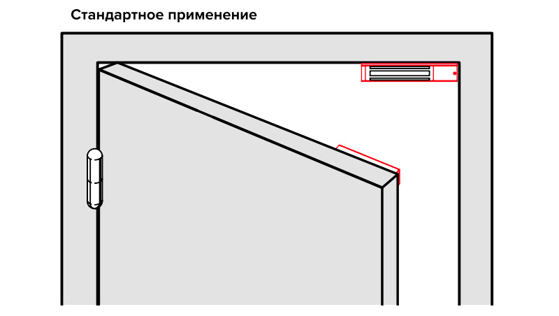 Возможна установка на сплошные, профильные и цельностеклянные двери распашного (в т. ч. маятниковые) и раздвижного типа, снаружи и внутри помещения.