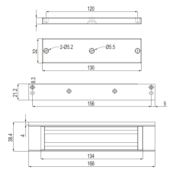 • Размеры корпуса магнита: 166 Д x 39 Ш x 21 В мм