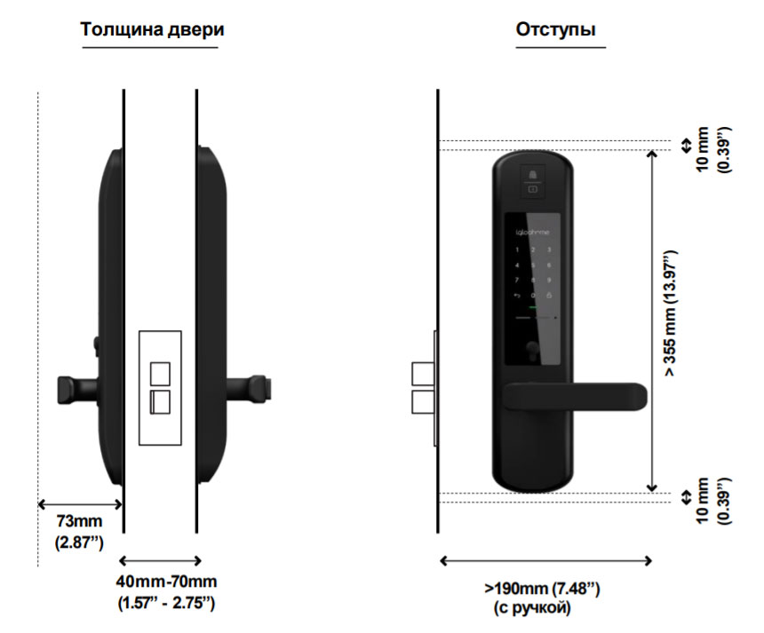 • RFID - igloohome Mortise может зарегистрировать до 100 ключ-карт.