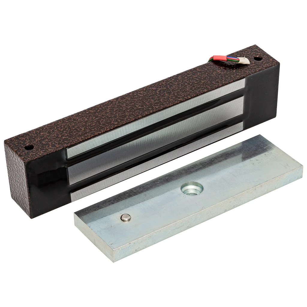 Электромагнитный замок AccordTec ML-400 KB-2 с уголком в коричневом исполнении предназначен для надежного запирания дверей в системах контроля и управления доступом. Он отличается высокой прочностью и устойчивостью к внешним воздействиям благодаря влагозащищенному корпусу с классом защиты IP67. Замок обеспечивает удерживающее усилие до 400 кг, что делает его подходящим для эксплуатации на объектах с повышенными требованиями к безопасности.