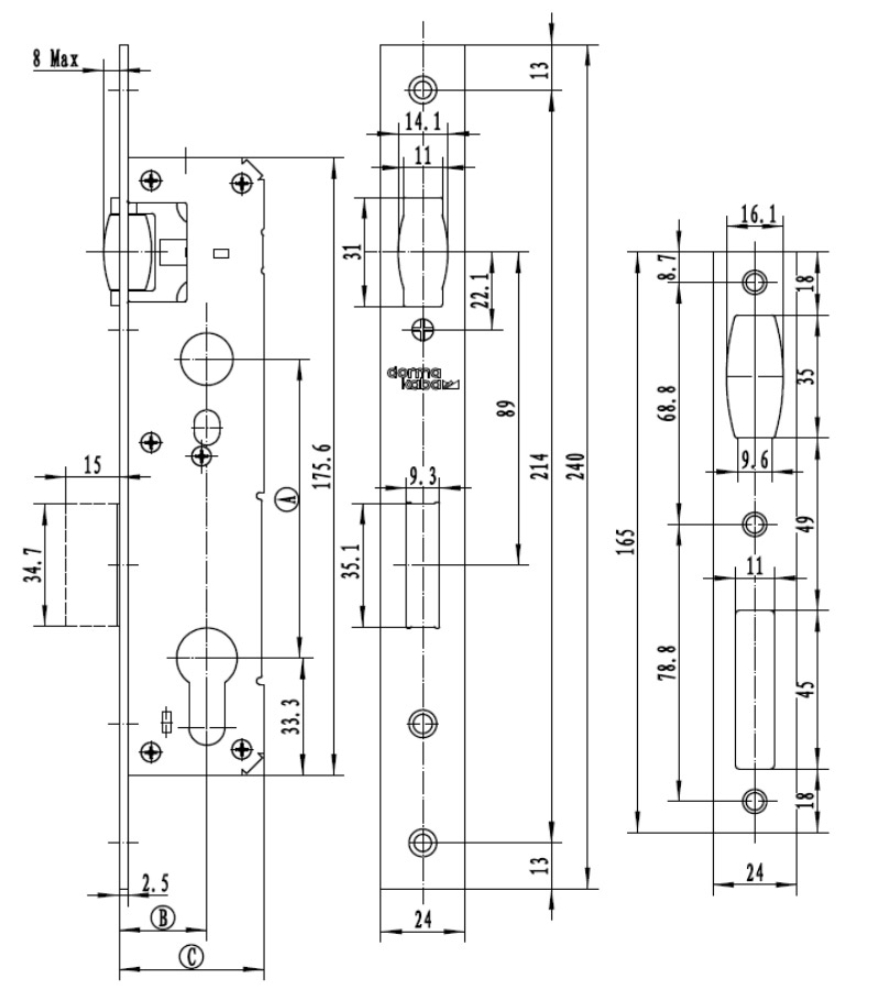 Корпус замка 860a 85/35/8 F=24 прям, мат. нерж. ст. (30) (8012315)
