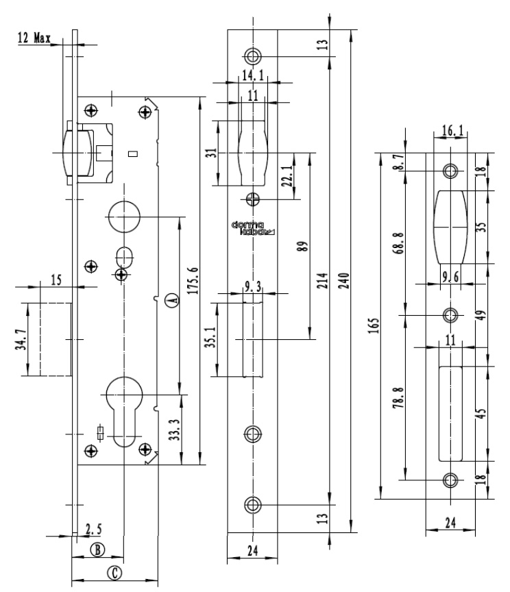 • Замок с торцевой планкой 24 мм для дверей из алюминиевого профиля.