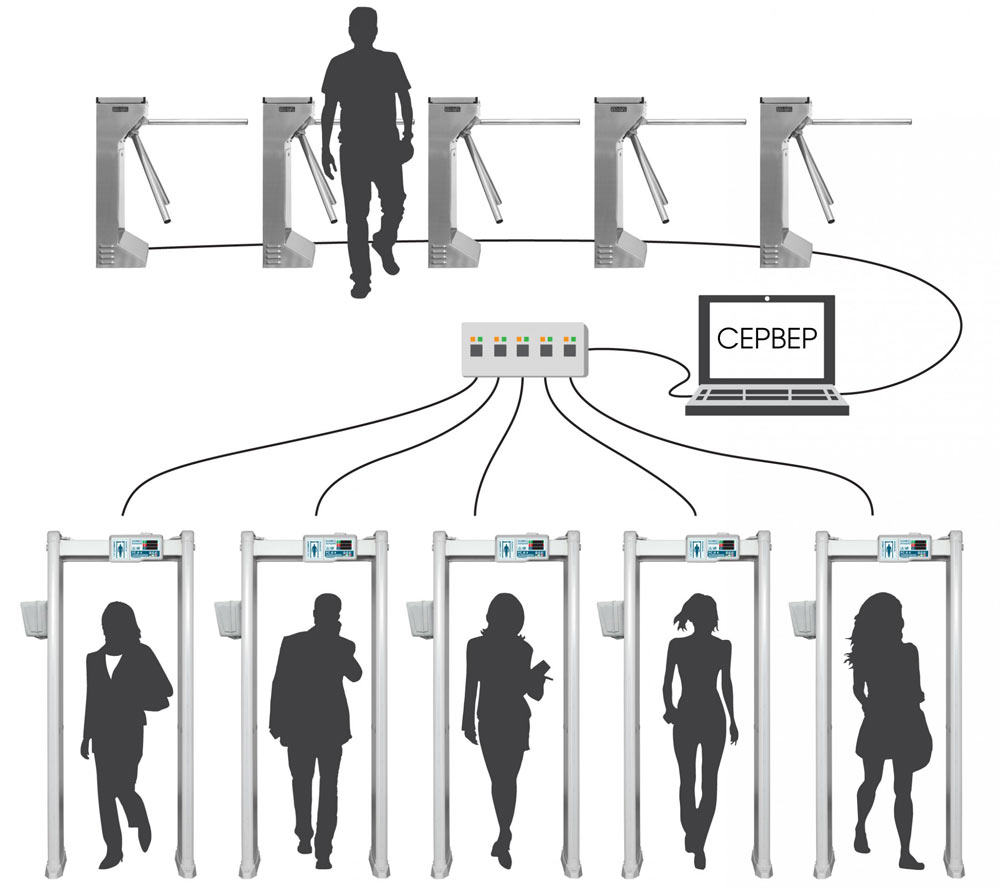 • Подключение металлодетектора к ПК. Функция контроля, настройки и управления металлодетекторами с помощью одного сервера.