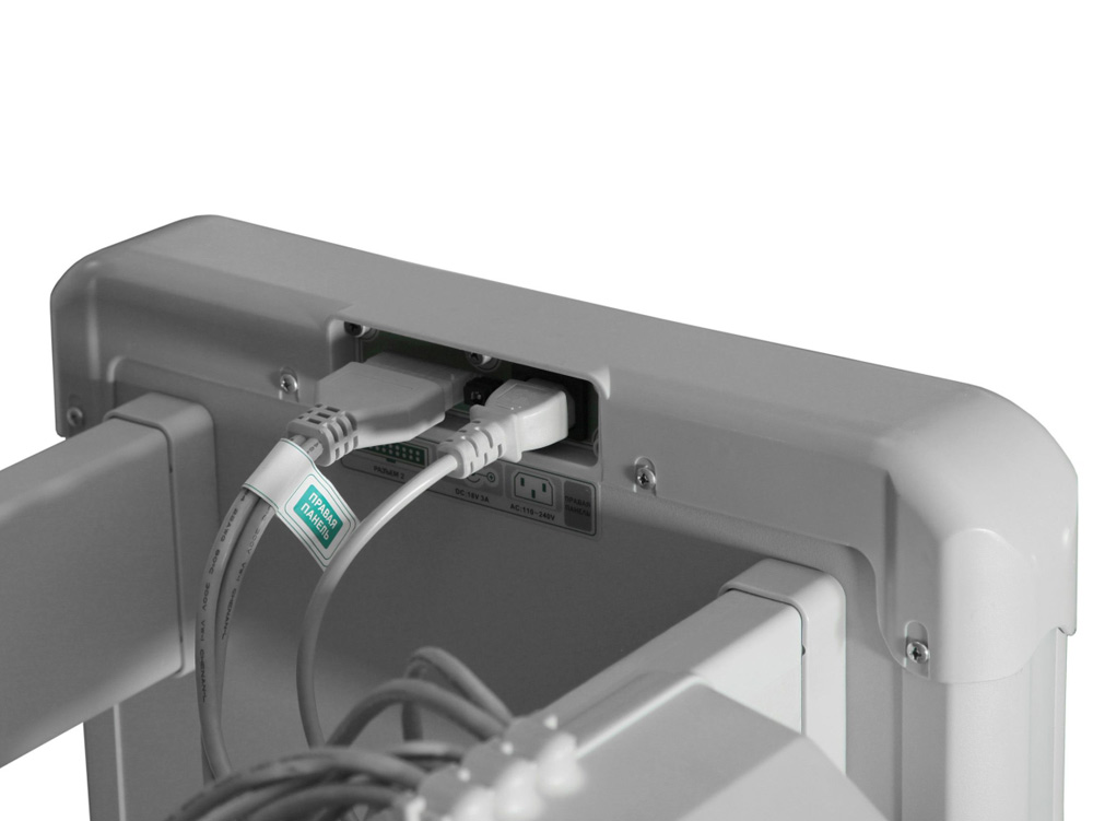 Подключение металлоискателя БЛОКПОСТ РС И 18 к сети возможно двумя способами (слева, сверху). Благодаря сухим контактам, рамку можно интегрировать в СКУД.