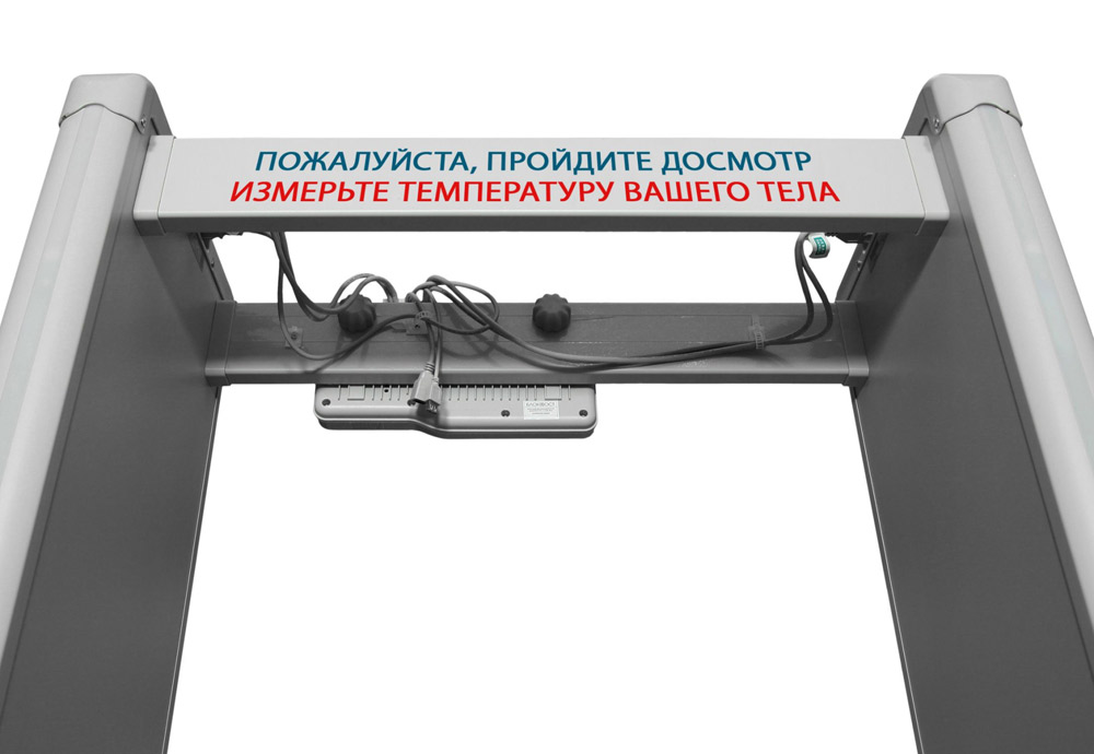 Пирометр, встроенный в отдельный блок управления, определяет температуру входящих в проем детектора до сотых градуса; при превышении предварительно настроенного предела подает сигнал тревоги на главный блок управления металлодетектором; после чего срабатывает звуковая сирена и подается сигнал на закрытие дверей, турникетов и т.д. (при наличии доп. опции – «сухой контакт»).