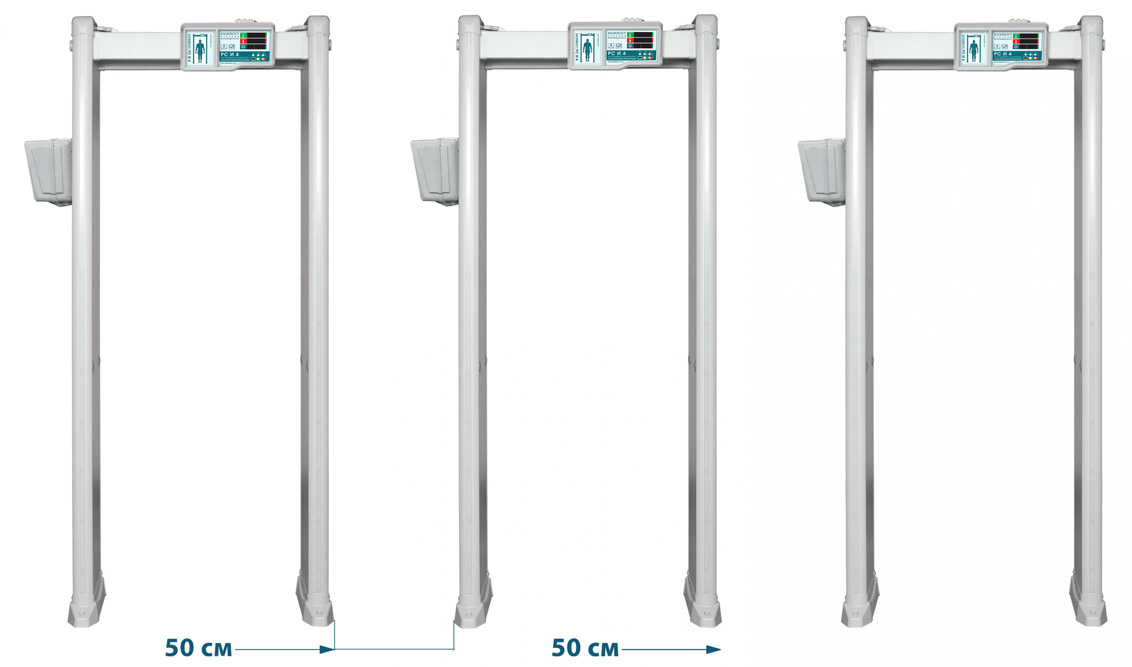 Металлодетекторы БЛОКПОСТ РС И 18 при параллельной эксплуатации рекомендуется располагать на расстоянии от 50 см друг от друга. Данное оборудование имеет несколько рабочих частот, благодаря чему снижаются взаимные помехи смежных металлодетекторов и обеспечивается возможность параллельной эксплуатации. Рекомендуется устанавливать разные значения рабочих частот для металлодетекторов, стоящих рядом друг с другом.