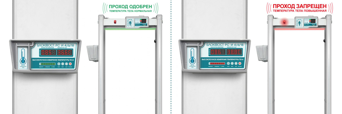 Компания «БЛОКПОСТ» представляет новую модель арочного металлодетектора – БЛОКПОСТ РС И 18 с бесконтактным, высокоточным пирометром. Этот металлодетектор предназначен не только для выявления запрещенных к проносу металлических изделий, но и для измерения температуры тела входящего в рамку человека. Досмотр проходит в потоковом режиме с выдачей сигнала тревоги при превышении установленного предельного значения.