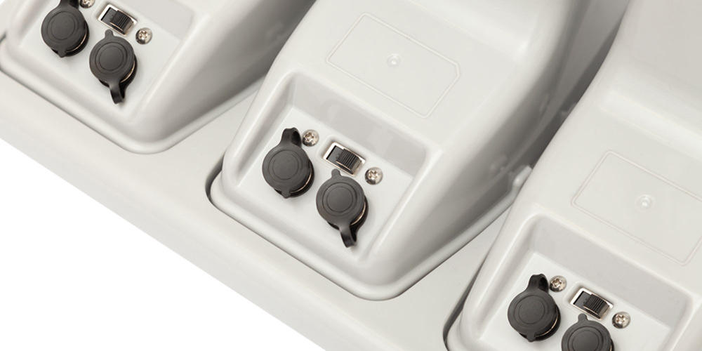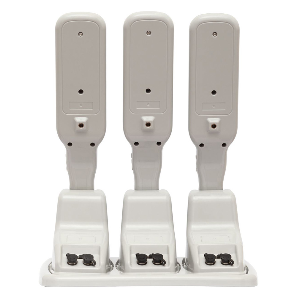 Металлодетектор легко присоединяется к зарядной станции. Зарядное устройство может заряжать до 3-х металлодетекторов одновременно.