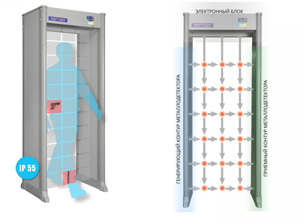 Арочный металлодетектор БЛОКПОСТ РС-3300М имеет возможность точно определить местонахождение одного или нескольких металлических предметов на теле человека, благодаря чему уменьшается время досмотра.