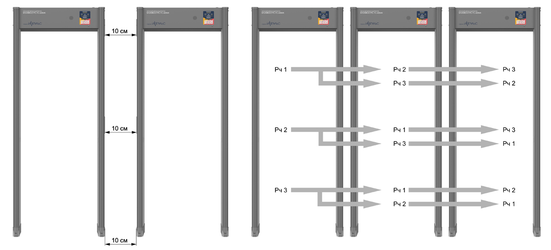 Многозонный металлодетектор имеет возможность точно определить местонахождение одного или нескольких металлических предметов на теле человека. Благодаря этому, уменьшается время досмотра и повышается его точность и эффективность.