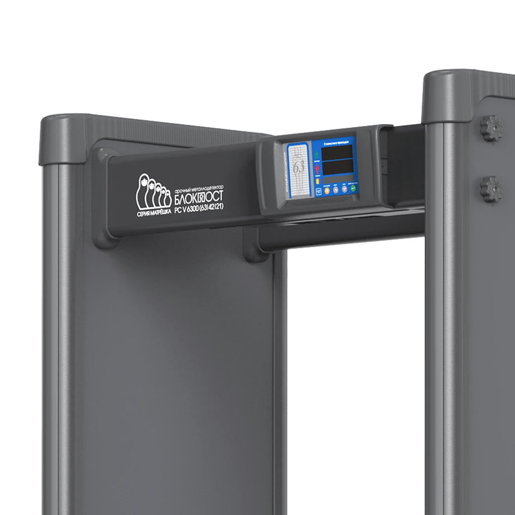 Арочный металлодетектор БЛОКПОСТ «МАТРЁШКА» PC V 6300 (63/42/21) — высокоточная много зональная система контроля, предназначенная для обнаружения металлических предметов любого типа — оружия, ножей, инструментов и мелких деталей. Модель является флагманом линейки «Матрёшка» и объединяет максимальное количество зон обнаружения — до 63, обеспечивая абсолютную равномерность электромагнитного поля без «слепых» участков. Устройство эффективно применяется в аэропортах, на промышленных объектах, стратегических предприятиях и в местах массового скопления людей.