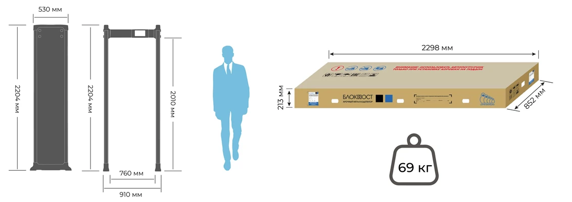 - Габариты прохода (Д×Ш×В): 480×760×2010 мм