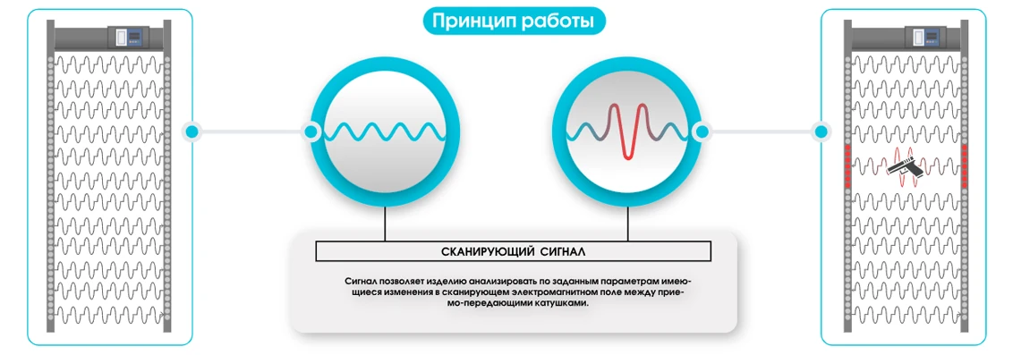 При обнаружении металлического предмета система оповещает оператора звуковым и световым сигналом, а также индикацией зоны, в которой был найден объект. Настройки чувствительности позволяют адаптировать металлодетектор к условиям эксплуатации, обеспечивая эффективную работу как в местах с высокой проходимостью, так и на объектах с повышенными требованиями безопасности.