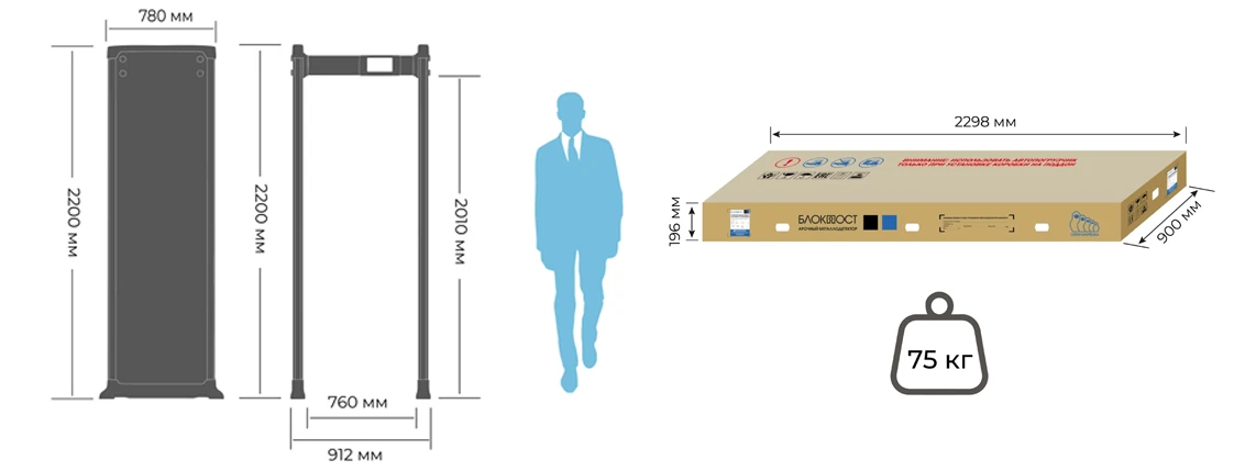 - Габариты прохода (Д×Ш×В): 480×760×2010 мм