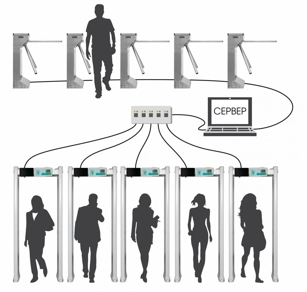 Во время прохода человека через металлодетектор с запрещенным к проносу предметом срабатывает световая и звуковая индикация, информация передается через проводное соединение на турникет (шлюзовую кабину, автоматическую дверь и т.д.), который блокирует дальнейшее движение человека. Если запрещенных к проносу предметов нет, то турникет разрешит доступ.