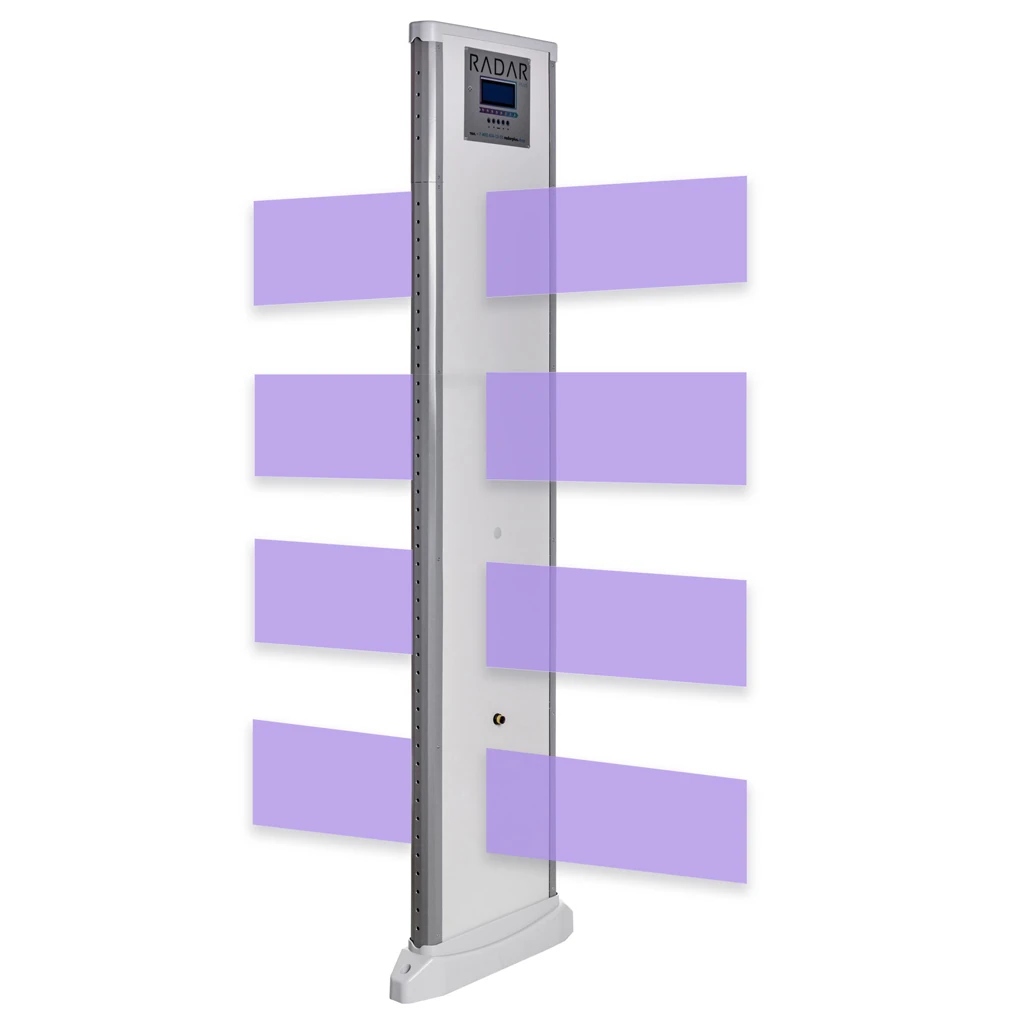 Стационарный металлодетектор-монопанель RADARPLUS MONO 03 — это однопанельная двусторонняя система обнаружения, формирующая зоны контроля по обе стороны панели. Шесть независимых вертикальных зон детектируют металлические предметы как при приближении к панели, так и при проходе с противоположной стороны, что делает модель максимально компактной и удобной для размещения в узких или нестандартных проходах.