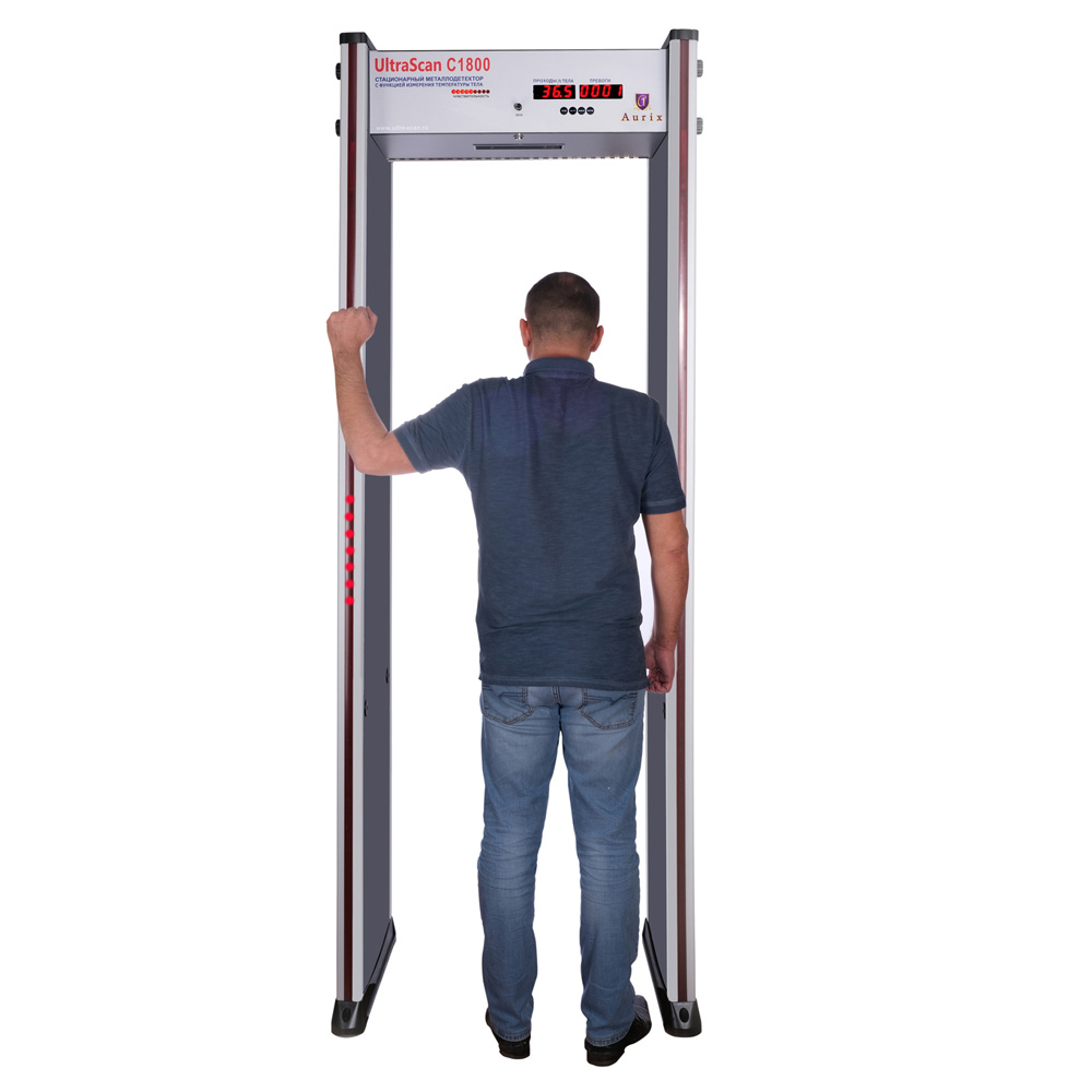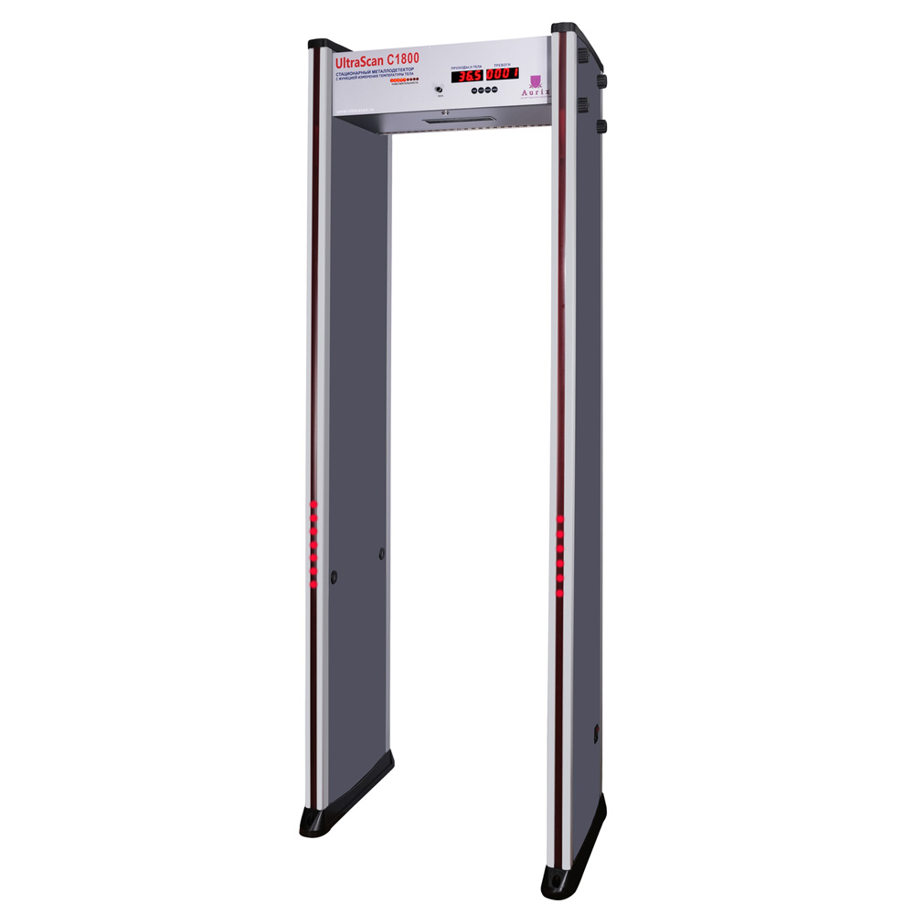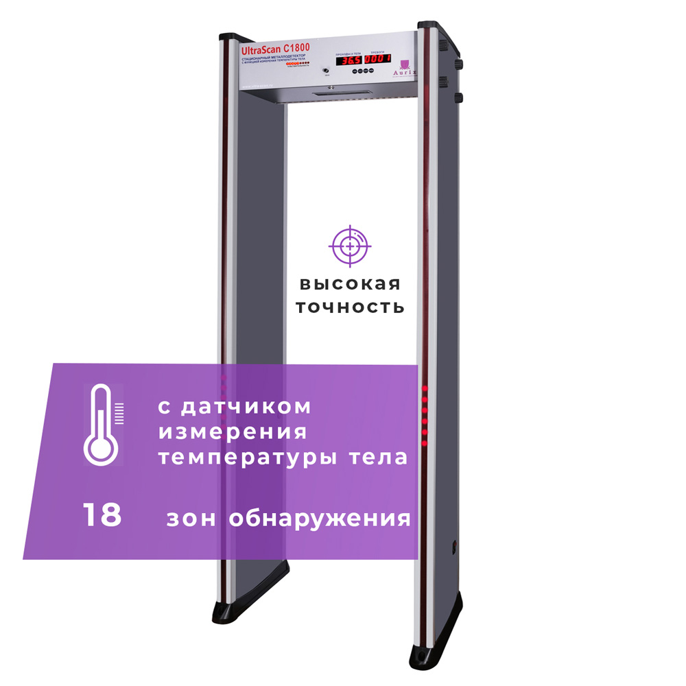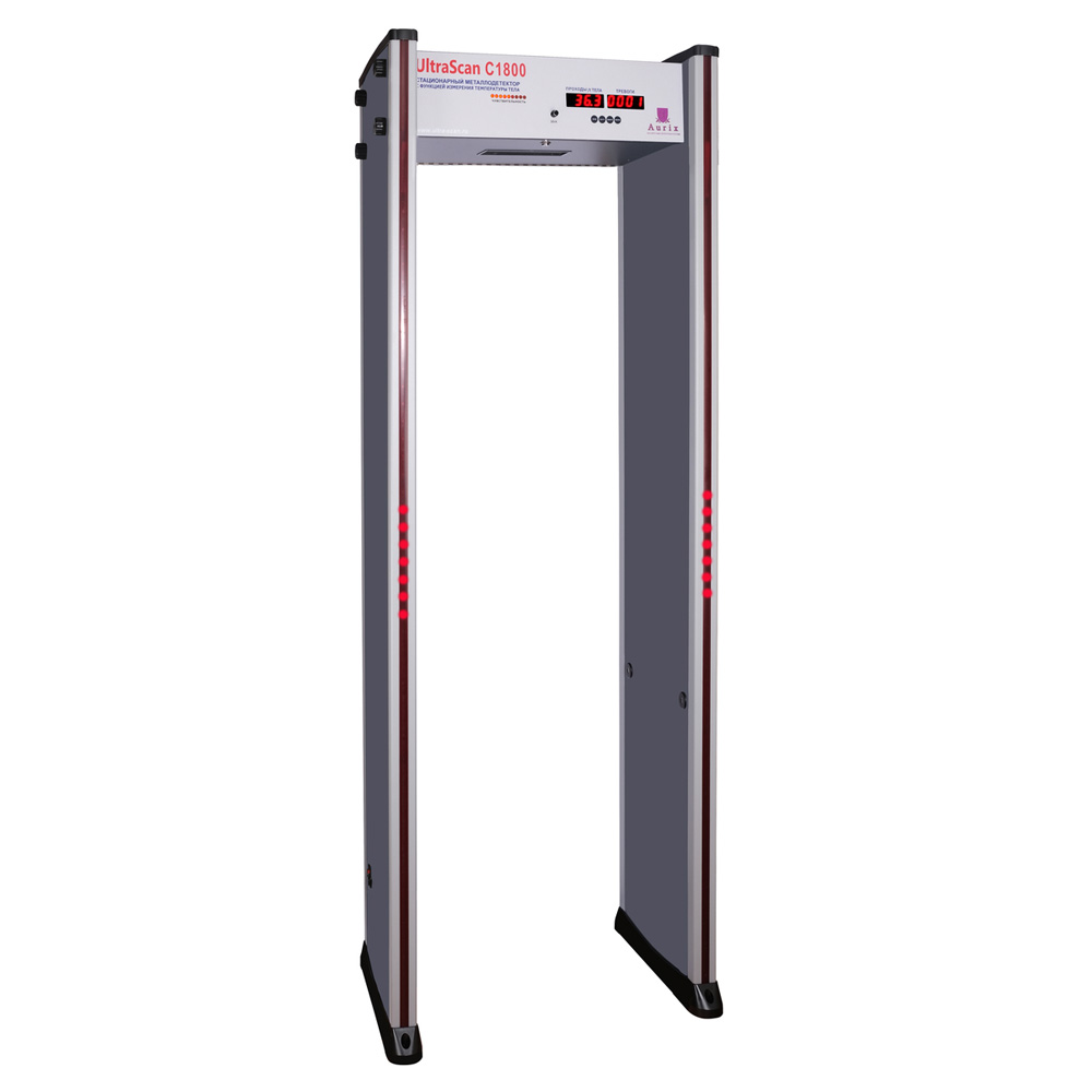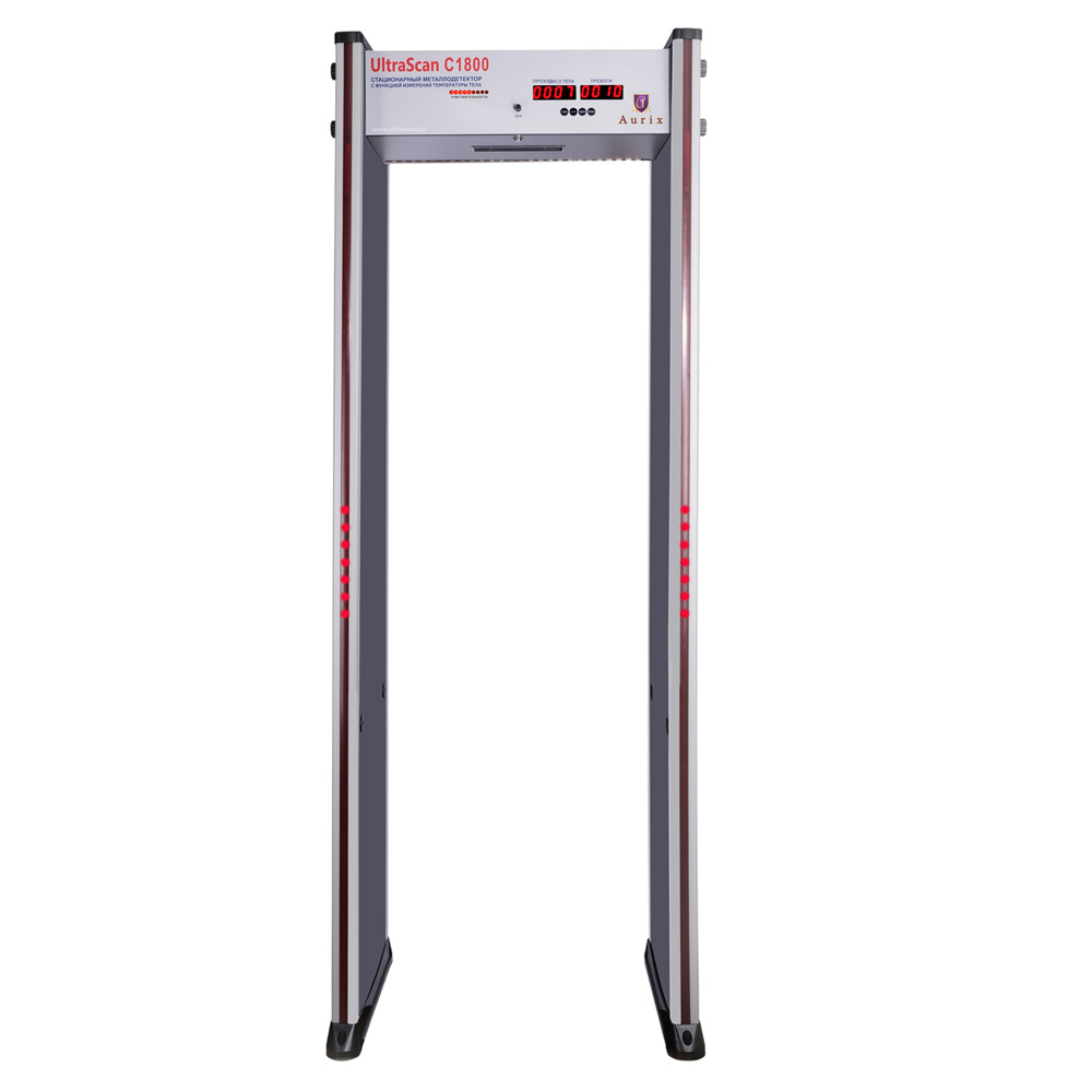 Стационарный металлоискатель UltraScan C1800 серия Т обеспечивает требуемый уровень безопасности в местах массового скопления людей. Измерение температуры тела при проходе минимизирует риск заражения, что особо важно во время пандемии. Рамка металлодетектора UltraScan C1800T имеет 18 зон обнаружения и способна определять даже небольшие массы металла, указывая их местоположение на светодиодных линейках по боковым панелям. Применение современных технологий обеспечивает большую скорость прохода людей через металлодетектор с минимальным количеством ложных сигналов тревоги.